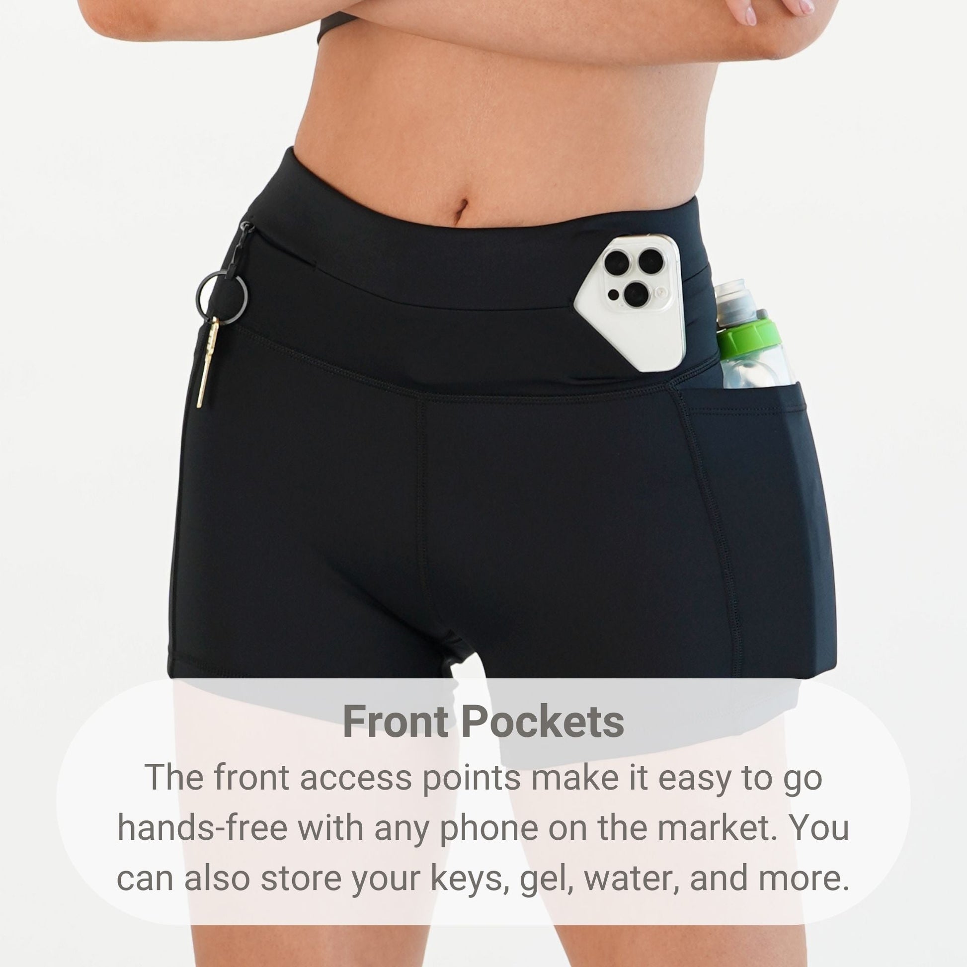 Black Friday Deals on last season apparel. Working up a sweat has just become easier with the FlipBelt Compression Shorts! These women’s compression shorts with pockets feature our classic FlipBelt waistband with 360 degree storage including side pockets for all the necessities you carry on the go. Our women's compression shorts with pockets come in a 5” inseam and are made to improve runner’s agility, muscle stability, mobility and most importantly, comfortability. These women's athletic shorts with pockets are made of moisture wicking fabric that’s a combination of polyester and spandex, providing maximum moisture control and the prevention of chafing. No matter the activity, FlipBelt running compression shorts with a phone pocket will help you look and feel your best. See also our Women's air compression shorts.