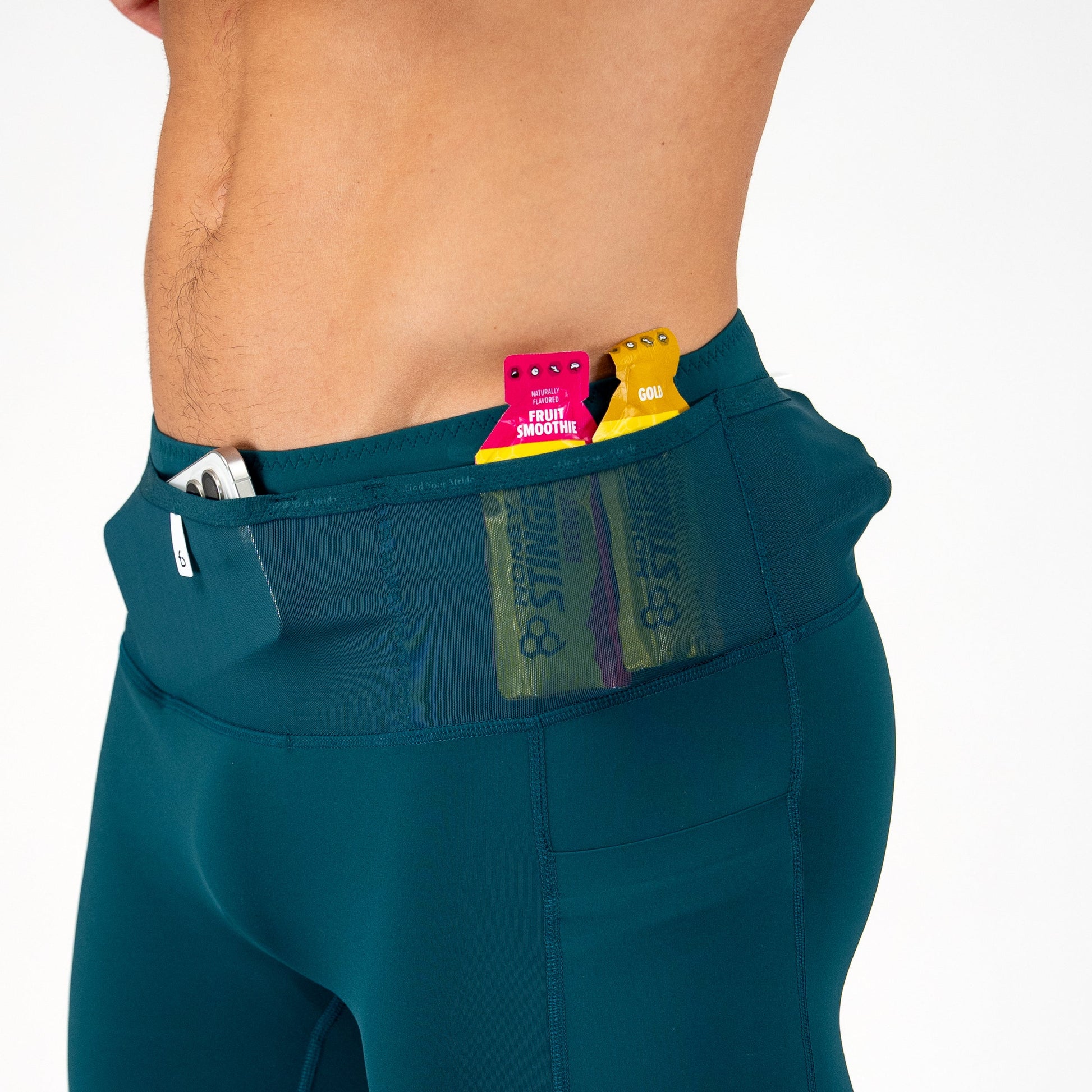 - Dual Side Pockets: Sleek thigh pockets with mesh backing add breathable, easy-access storage for larger items like fuel or tech.