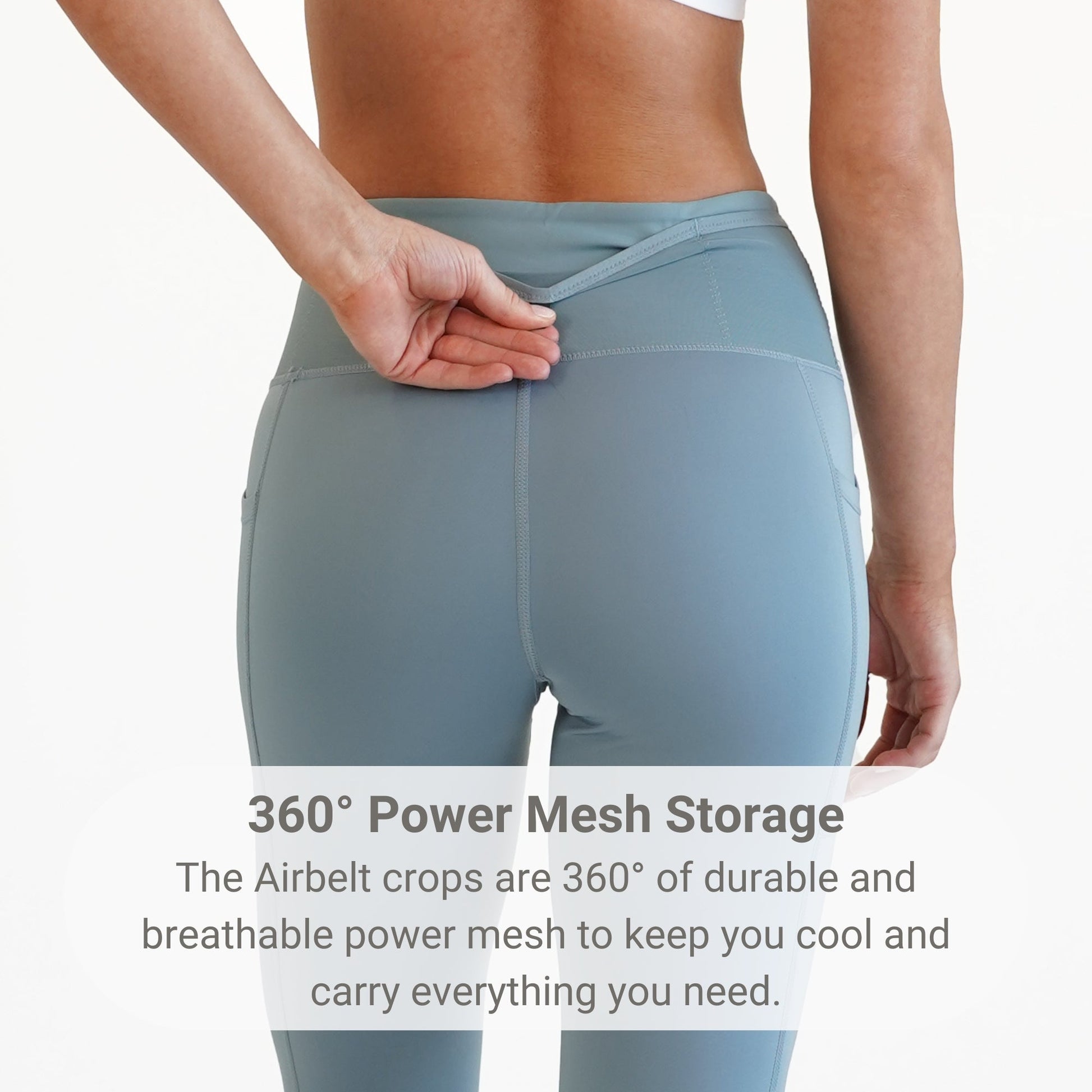 Stay hydrated, fueled, and connected: Easily access gels, snacks, and your phone through the top-loading AirBelt and side pockets. Keep your run fueled and your playlist pumping, mile after exhilarating mile with our women's cropped workout leggings.